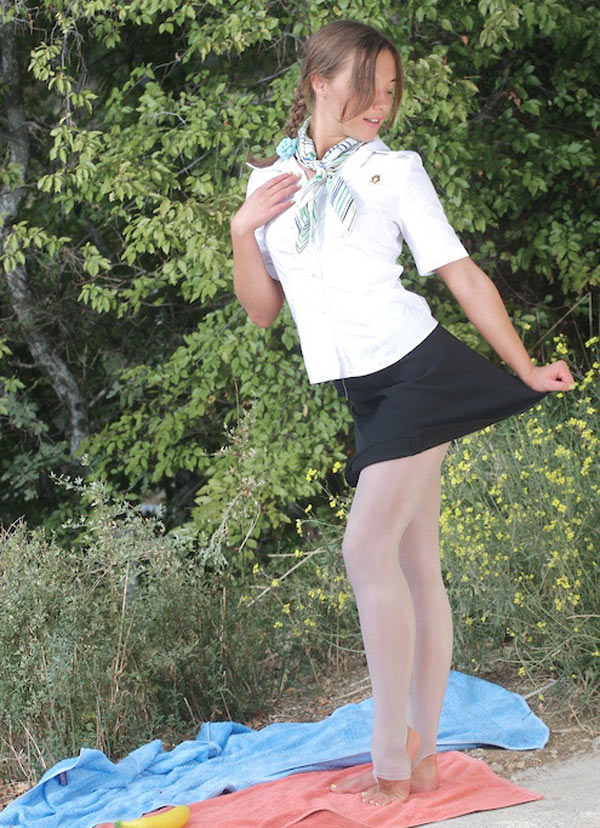 Девочка позирует в колготках и без них