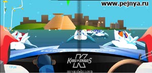 Интересная игра в каторой вы при помощи ветра управляете воздушным шаров и ловите им пингвинов прыгающих с утеса.