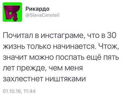 Последнее время хожу какой-то сонный целыми днями. Решил начать делать по утрам зарядку, чтобы взбодриться. Теперь хожу не только сонный, но ещё и уставший.