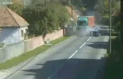 Лобовое столкновение легковушки и грузовика |