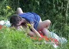 Подкараулил с камерой и заснял парочку занимающиюся сексом.