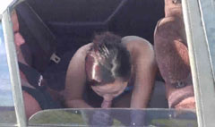Съёмка камерой с большим увеличением. Девка делает парню минет прямо в машине